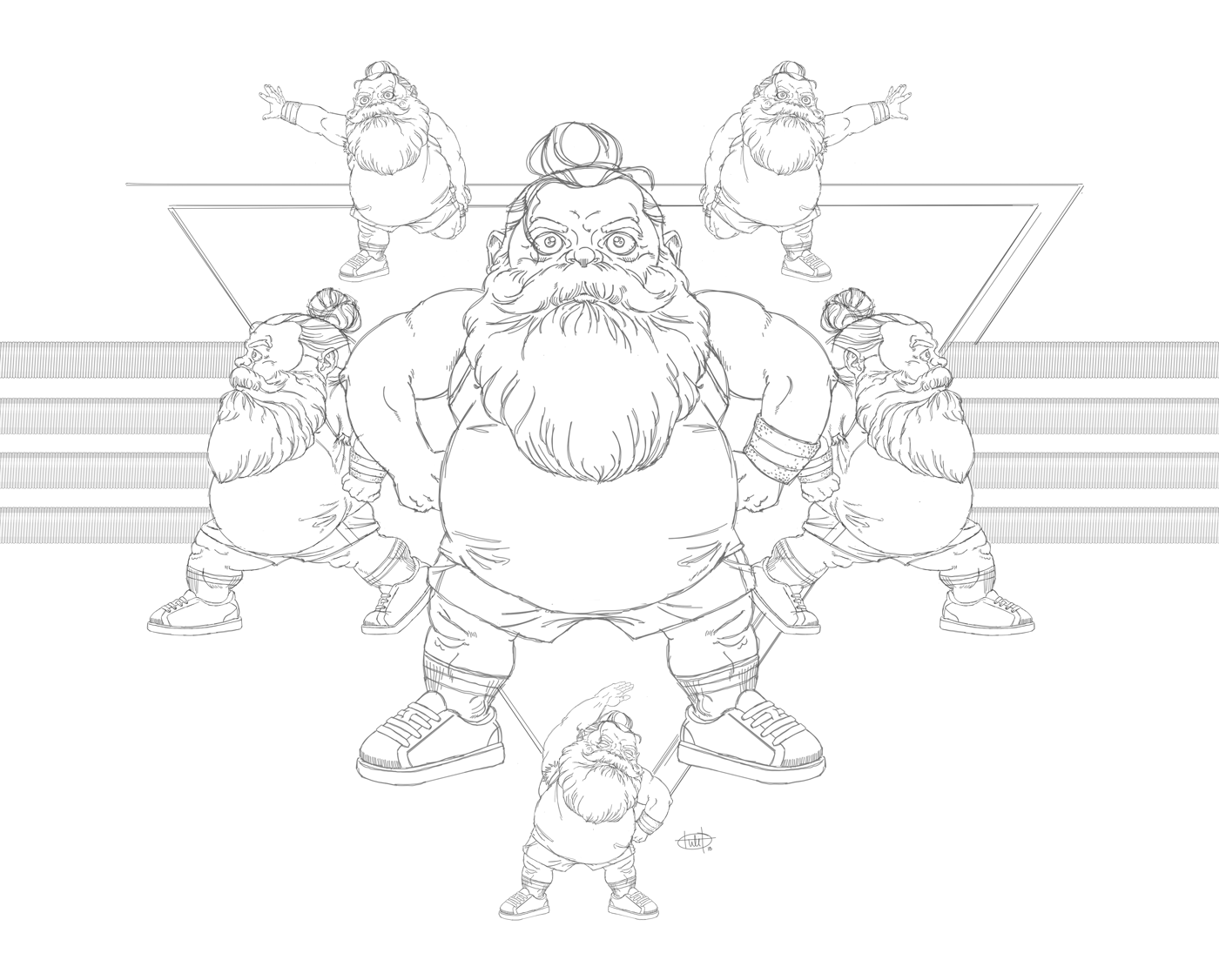The synthesis of a background character in the final episode of Portlandia & a Rocky workout album I used to own as a kid. Inspiration is an odd bastard. Inking and color next.
